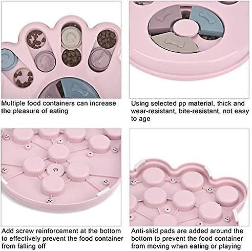IMPROVE IQ: The interactive dog puzzle toy is a kind of exploring feeding dispenser, which through Hide and Seek design to stimulate pet's mind by the game structure to obtain food; Pet can slide the covers on the food to figure out how to eat up the food covered, and it enables the dog to think out and train their brain. After a few more exercises, your dog will certainly become more intelligent. SLOW FEEDING: With feeder for fun, pets can eat a healthier and more balanced meal. Our educational dog food bowl toy box is designed as a treat dispenser with several seperated little space boxes to put different food,which making it get food not easier and then creat another function--slow down feeding; It will control the speed of eating, help dogs keep a good shape and state to prevent overeating and help to digest, training your dog with order and posture. EATING WITH FUN: There are three cute shapes( round, hexagon and paw) of the slow feeding dog bowl, which is more attractive and can bring more fun to your pets while eating with intelligent playing games, reducing boredom and negative behavior good for training or alone time. And the bottom of dog food bowl has rubber non-slip edge mat to prevent the pet feed bowl from moving around and tipping over. SAFE&PRIME MATERIAL: The dog puzzle toys is made of high quality polypreopylene plastic, which is safe and health, durable and bite resistant; it 's also environmental protection, tearing resistance, anti-aging, will not burst into sharp pieces to hurt your pets. Features with non detachable plastic slider, avoid swallowing by mistake. It is tasteless and odorless material making sure your dog can play and chew safely EASY TO CLEAN: The dog treat dispenser is super easy to wash, you can wash with soap and water, then dry; Or simplely wipe clean by wet cloth. Please feel free to contact us if you meet any problems or dissatisfy in any way, we will solve them within 24 hours.- Brand: Baicccf