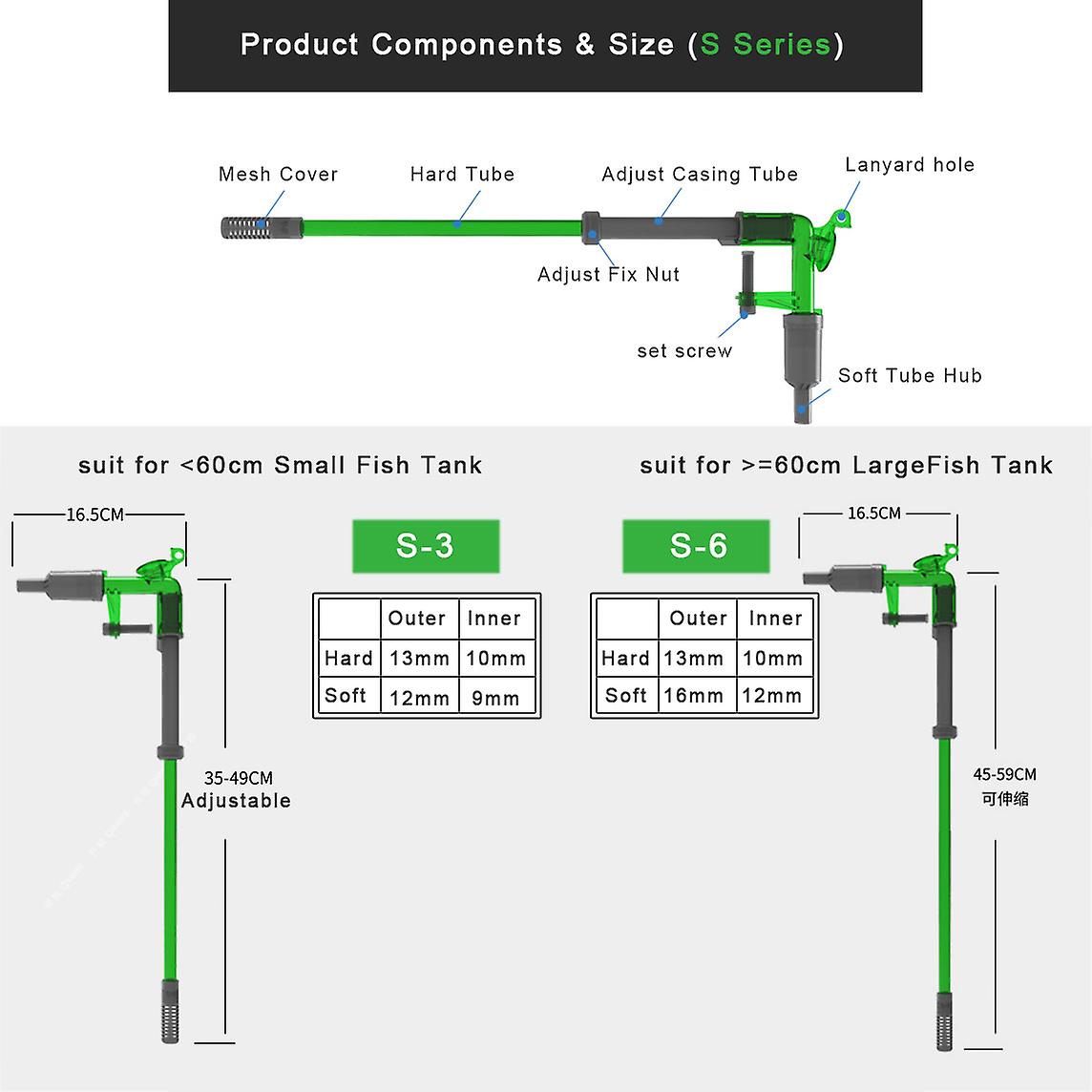 2 in 1 multifunctional aquarium cleaner, perfect for water changes and sand washingThe pump is easy to grab, just squeeze the pump a few times, the water will start automaticallyThe integrated filter screen in the suction funnel prevents animals and gravel from being sucked inHigh quality 155cm hose with good flexibility, safe and durableA bracket securely fixes the water changer to the aquarium for hands-free use, ideal for daily maintenance and regular water changes- Brand: Unbranded